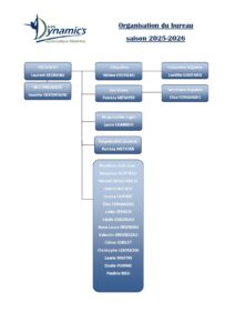 Le Bureau est composé de 20 membres actifs. Nous fonctionnons avec des Commissions : Gala, Petits matériels, Communication, Convivialité… Il y a environ une réunion par mois entre septembre et juin. Si vous souhaitez venir nous rejoindre, vous êtes les bienvenus contactez nous : dynamics49230@gmail.com